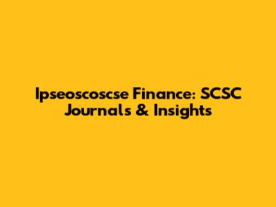 Key Topics Covered in SCSC Journals Related to Ipseoscoscse Finance