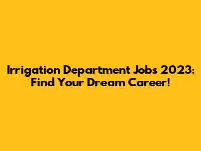 Irrigation Department Jobs 2023: Find Your Dream Career!