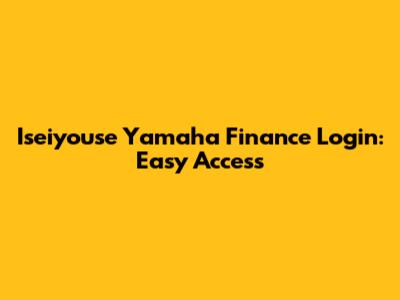Iseiyouse Yamaha Finance Login: Easy Access