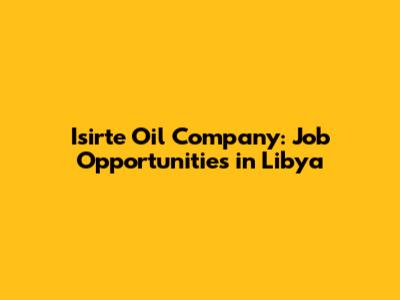 Isirte Oil Company: Job Opportunities In Libya