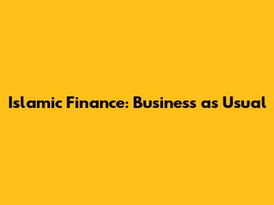 Islamic Finance: Navigating Business As Usual