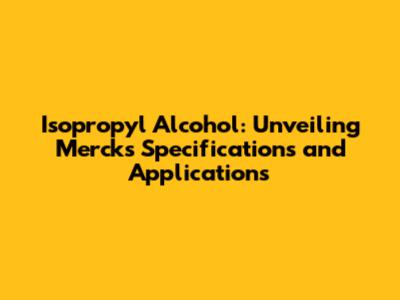 Hey there, folks! Ever heard of isopropyl alcohol (IPA)? I bet you have, especially if you're into cleaning, sanitizing, or even DIY projects. It's that magic liquid found in rubbing alcohol, hand sanitizers, and a whole bunch of other things. But have you ever stopped to wonder about the specifics? Like, what exactly is isopropyl alcohol, what are its uses, and what standards does a company like Merck – a real heavyweight in the chemical world – adhere to? Well, buckle up, because we're about to dive deep into the fascinating world of IPA, with a special focus on Merck's specifications and how this versatile compound is used all around us.