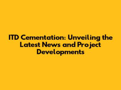 ITD Cementation: Breaking News, Updates, And Project Insights