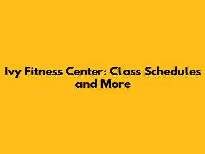 Ivy Fitness Center: Class Schedules And More