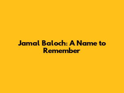 Jamal Baloch: A Name To Remember