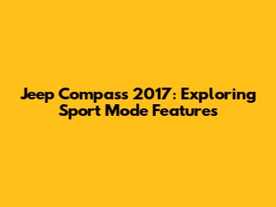 Let's dive into the Jeep Compass 2017 and explore its Sport Mode features. For those of you who own or are considering buying this model, understanding the nuances of Sport Mode can significantly enhance your driving experience. We'll cover everything from what Sport Mode does to how it impacts performance and fuel efficiency. Think of this as your friendly guide to unlocking the full potential of your Jeep Compass. So, buckle up, and let's get started!