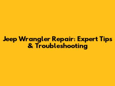 Jeep Wrangler Repair: Expert Tips & Troubleshooting