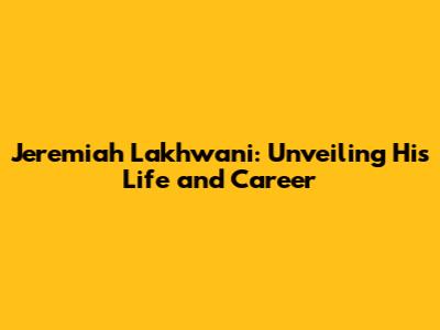 Jeremiah Lakhwani: Unveiling His Life And Career