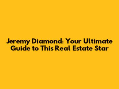 Jeremy Diamond: Your Guide To The Real Estate Pro