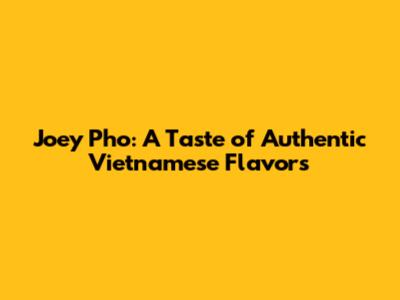 Joey Pho: A Taste of Authentic Vietnamese Flavors