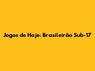 Jogos De Hoje: Brasileirão Sub-17