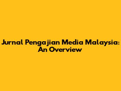 Jurnal Pengajian Media Malaysia: An Overview