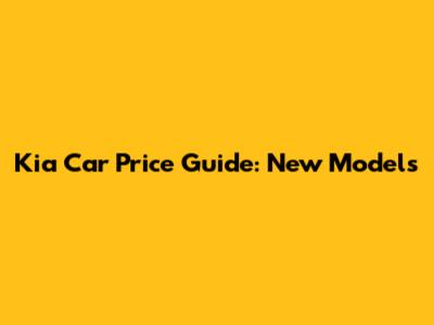 Kia Car Price Guide: New Models