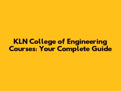 KLN College Of Engineering Courses: Your Complete Guide