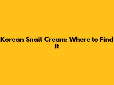 Korean Snail Cream: Where To Find It