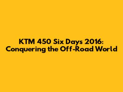 KTM 450 Six Days 2016: A Comprehensive Guide
