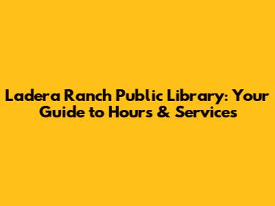 Hey guys! Are you trying to figure out when the Ladera Ranch Public Library is open? Or what awesome services they offer? You've come to the right place! This guide will give you the lowdown on everything you need to know to make the most of your local library.