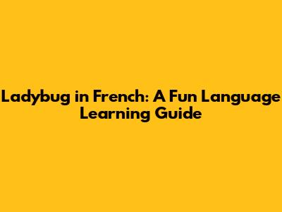 Ladybug In French: A Fun Language Learning Guide