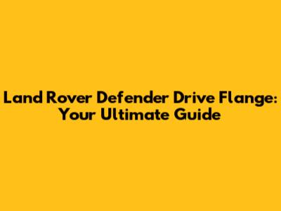 Land Rover Defender Drive Flange: Everything You Need To Know