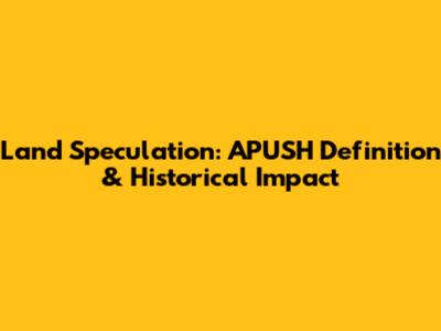 By understanding the definition, historical context, and impact of land speculation, you'll be well-prepared to answer questions about this important topic on your APUSH exam. Good luck!