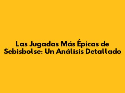 Las Jugadas Más Épicas De Sebisbolse: Un Análisis Detallado