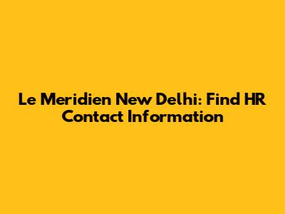 Le Meridien New Delhi: Find HR Contact Information