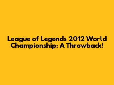 League Of Legends 2012 World Championship: A Throwback!