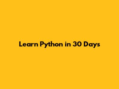 Learn Python In 30 Days