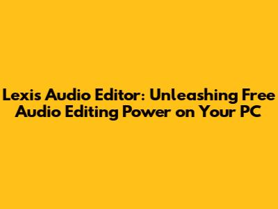 Hey guys! Ever wanted to dive into the world of audio editing but felt like you needed a super expensive setup? Well, guess what? You don't! Lexis Audio Editor for PC is here to save the day (and your wallet!). This free software is a total game-changer for anyone wanting to record, edit, and manipulate audio files right on their computer. Whether you're a budding podcaster, a musician looking to polish your tracks, or just someone who enjoys tinkering with sound, Lexis Audio Editor is a fantastic tool to have in your arsenal. Let's dive deep into why this software is so awesome, its features, and how you can get started, for FREE, on your PC! I will show you how to download and install it for your PC.