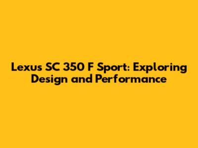 Lexus SC 350 F Sport: Exploring Design And Performance