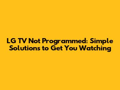 LG TV Not Programmed? Quick Fixes & Troubleshooting