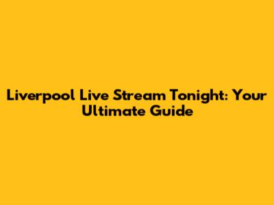 Liverpool Live Stream Tonight: Your Ultimate Guide