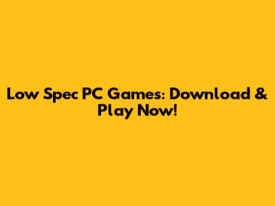 Low Spec PC Games: Download & Play Now!