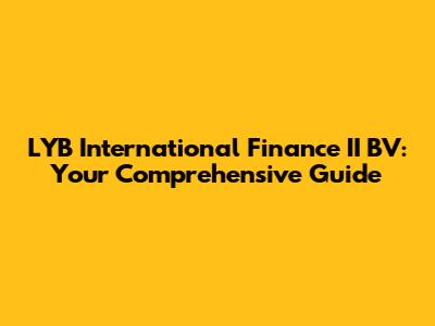 Hey there, finance enthusiasts! Ever heard of LYB International Finance II BV? If you're knee-deep in the world of international finance, or even just curious about how global money flows, you've probably stumbled across this name. But what exactly is it? And why does it matter? In this comprehensive guide, we're going to dive deep into LYB International Finance II BV, breaking down its role, significance, and the impact it has on the financial landscape. Get ready to have all your burning questions answered and a whole lot more! We will explore the ins and outs of this financial entity, ensuring you understand its purpose, functions, and relevance in today's interconnected financial world. So, buckle up, and let's get started on this exciting journey.