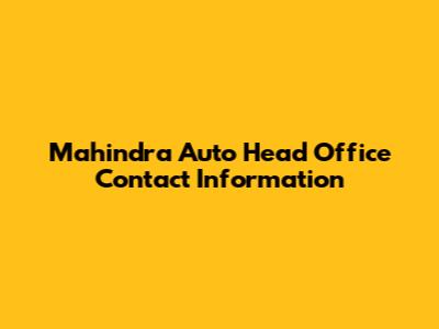 Mahindra Auto Head Office Contact Information