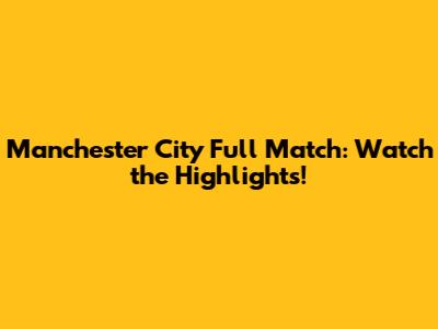 Manchester City Full Match: Watch The Highlights!