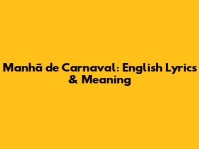 Manhã De Carnaval: English Lyrics & Meaning