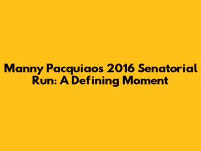 Manny Pacquiao's 2016 Senatorial Run: A Defining Moment