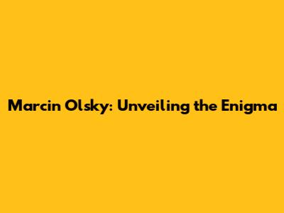 Marcin Olsky: Unveiling The Enigma