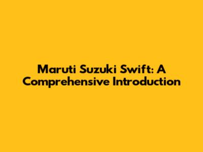 Maruti Suzuki Swift: A Comprehensive Introduction