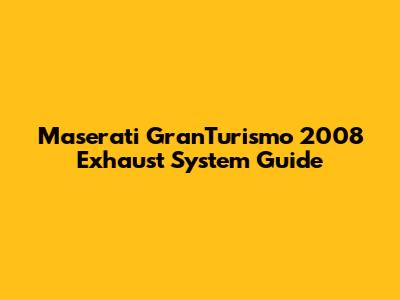 The exhaust system on the 2008 Maserati GranTurismo is a critical component that affects both performance and sound. Whether you're looking to maintain the stock system or upgrade to an aftermarket option, understanding the key components, potential issues, and maintenance requirements is essential. By following the tips and advice in this guide, you can ensure that your GranTurismo continues to deliver the thrilling driving experience you expect.