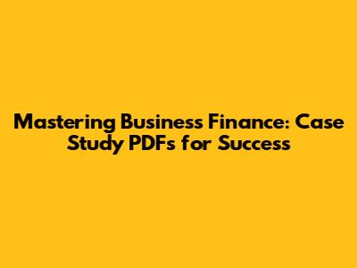 Mastering Business Finance: Case Study PDFs For Success