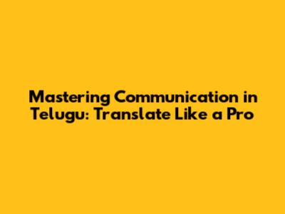 Mastering Communication In Telugu: Translate Like A Pro