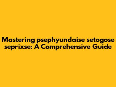Mastering Psephyundaise Setogose Seprixse: A Comprehensive Guide
