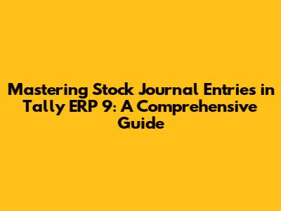 Mastering Stock Journal Entries In Tally ERP 9: A Comprehensive Guide