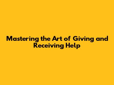 Mastering The Art Of Giving And Receiving Help