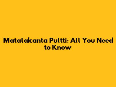 Matalakanta Pultti: All You Need To Know
