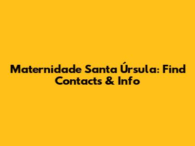 Maternidade Santa Úrsula: Find Contacts & Info