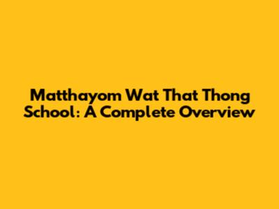 Matthayom Wat That Thong School: A Complete Overview