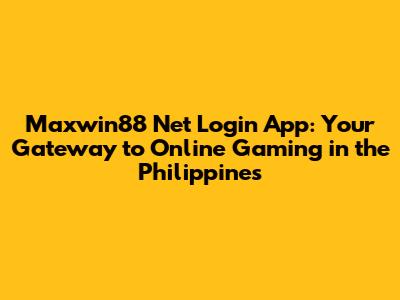 Maxwin88 Net Login App: Your Gateway To Online Gaming In The Philippines